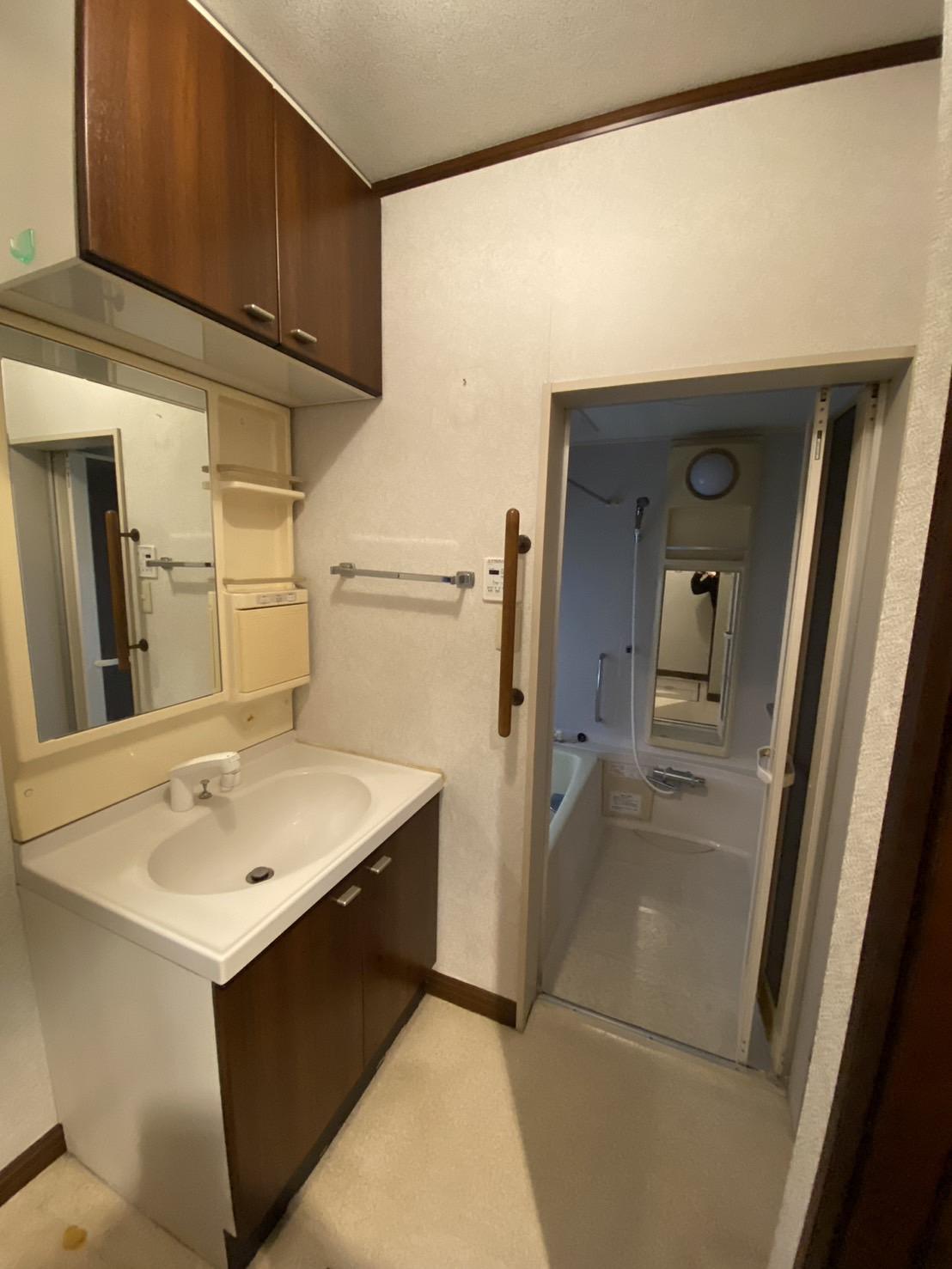 洗面所とお風呂場の写真です!室内洗濯機設備があるので洗面所に洗濯機を置くことができます!